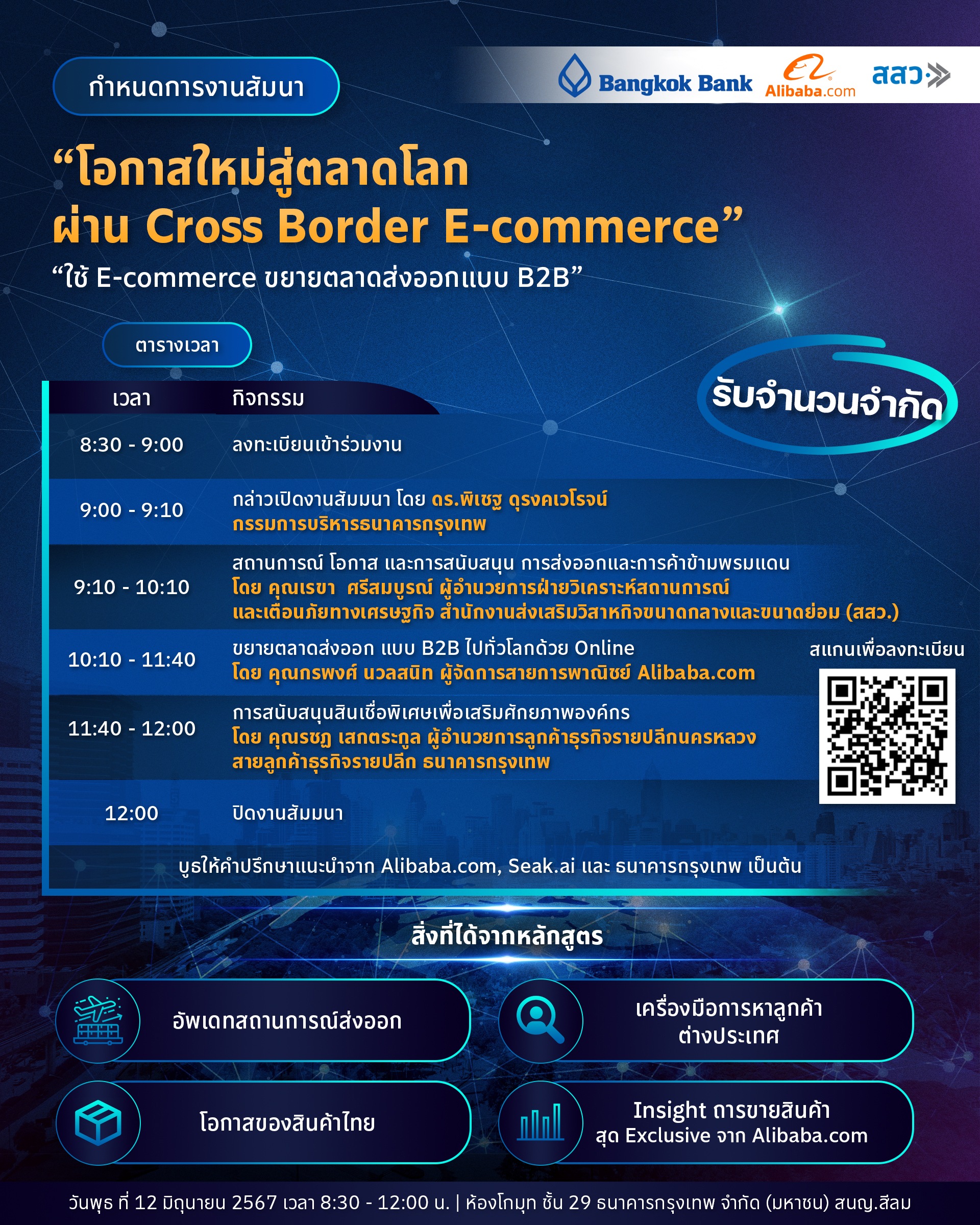 Customers or interested parties can join the seminar for free by scanning the QR Code to register. For more information, please call Ms. Nutchanun Kunsena at 0-2230-2353 or Ms. Penpisut Charoensuk at 0-2230-2376.