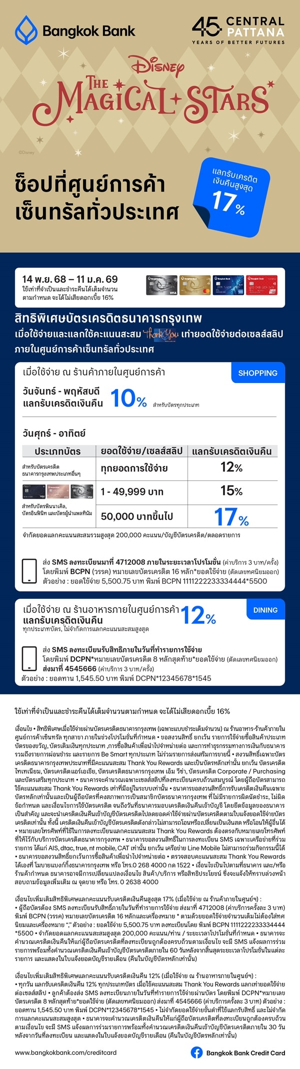 • Get an additional 10% cash back for All Bangkok Bank credit cards.