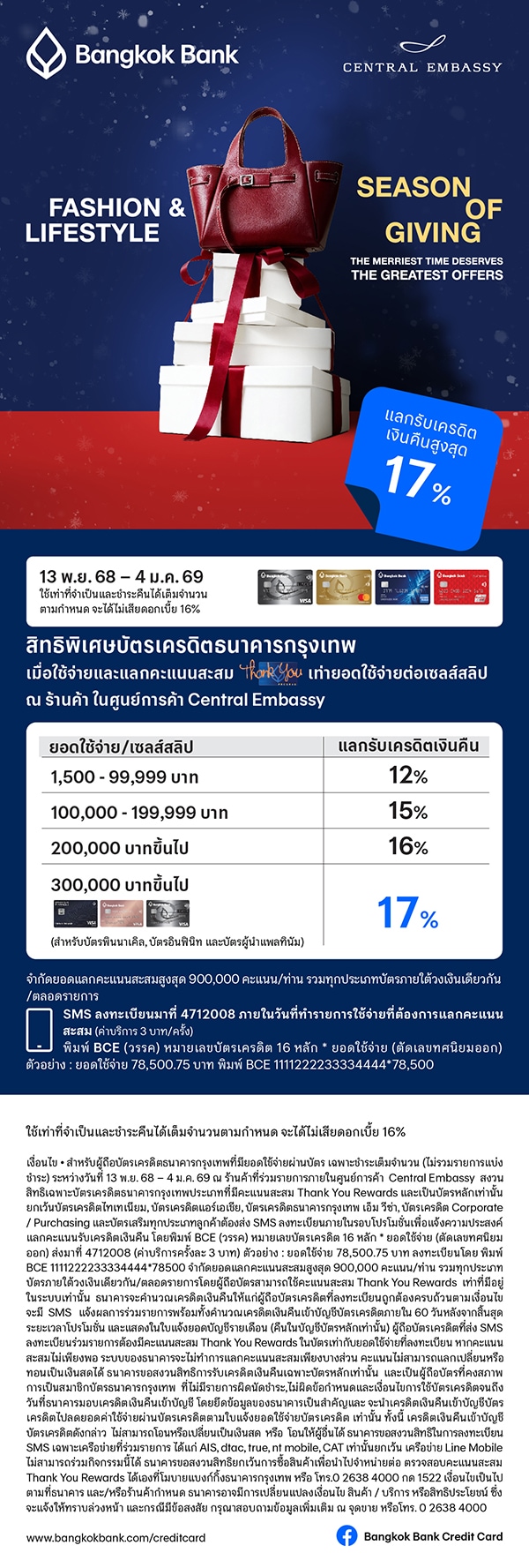 #Tier 4 : Special privilege for Pinnacle, Infinite and Platinum Leader credit cards; Get 17% cash back when spend 300,000 baht or more per sales slip.