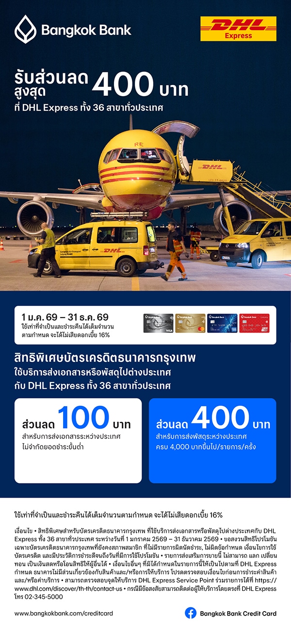 • 400 baht discount for international parcel delivery of 4,000 baht or more/item/time.