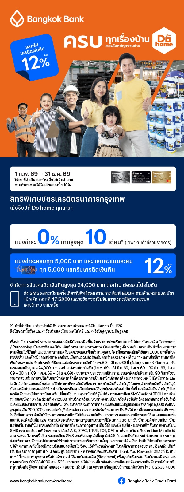 Paying with 0% interest rate installment plan @Dohome upto 10 months plus receive cash back up to 12%.