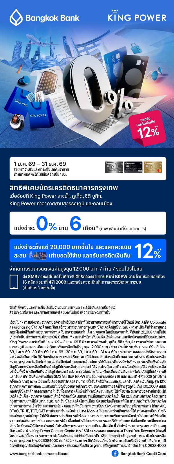 Paying with Installment 0% interest rate installment plan @King Power upto 6 months plus receive cash back up to 12%.
