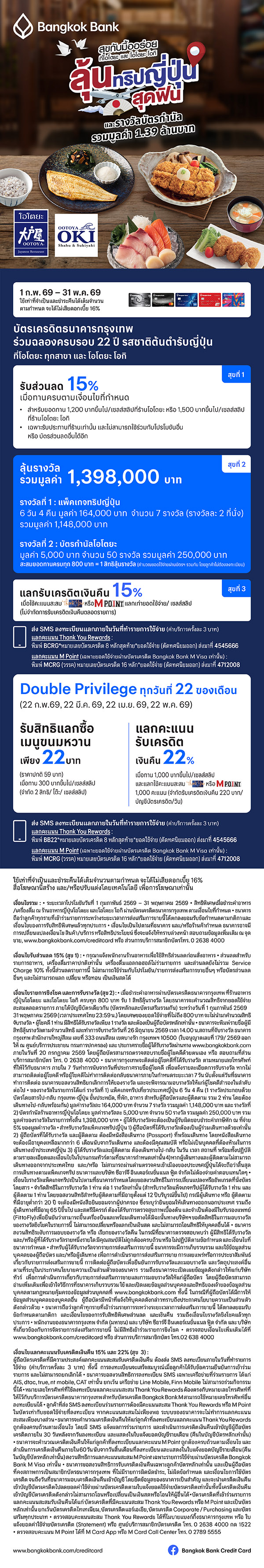 Exclusive privileges for Bangkok Bank credit cardholders at Ootoya and Ootoya Oki