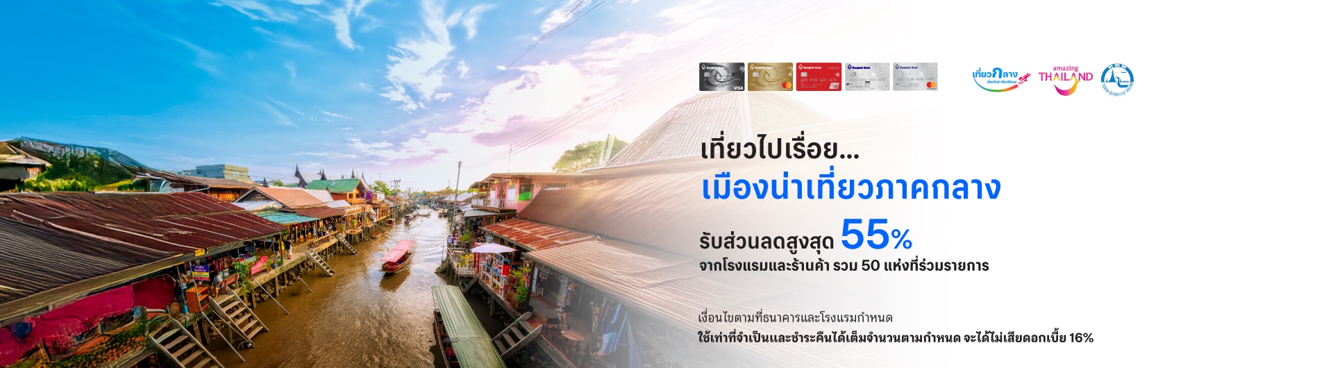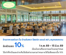 Special privileges for Bangkok Bank credit cardholders at participating hotels, restaurants & cafe, spa and activities in Samut Songkram, Ratchaburi, Suphanburi, Angthong, Chainat and Lopburi.