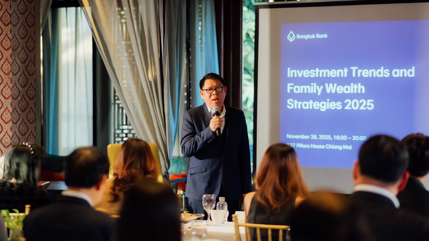 Bangkok Bank invited our Bangkok Bank Wealth and Bangkok Bank Private Bank customers to an exclusive investment seminar followed by a dinner talk. The seminar focused on two major themes, analyzing financial strategies and identifying opportunities in each quarter of 2026, as well as strategic approaches to sustaining family wealth across generations.