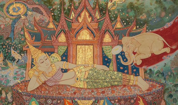 เป็นเหตุการณ์ความฝันของพระนางสิริมหามายา ผู้ตั้งปณิธานในตำแหน่งพุทธมารดา มารดาของพระพุทธเจ้า โดยการบำเพ็ญบารมีมาตลอดแสนกัปของพระนาง จนได้เป็นผู้ให้กำเนิดพระศาสดาผู้นำพาสัตว์โลกให้หลุดพ้นจากสังสารวัฏนี้ แต่ในการเกิดอันเป็นมงคลนี้ …………….