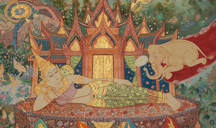 เป็นเหตุการณ์ความฝันของพระนางสิริมหามายา ผู้ตั้งปณิธานในตำแหน่งพุทธมารดา มารดาของพระพุทธเจ้า โดยการบำเพ็ญบารมีมาตลอดแสนกัปของพระนาง จนได้เป็นผู้ให้กำเนิดพระศาสดาผู้นำพาสัตว์โลกให้หลุดพ้นจากสังสารวัฏนี้ แต่ในการเกิดอันเป็นมงคลนี้ …………….