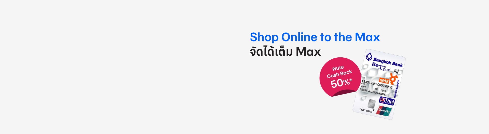 สำหรับผู้ถือบัตรเดบิตบีเฟิสต์ เครือข่ายยูเนี่ยนเพย์ เมื่อช็อปออนไลน์ผ่านบัตรเดบิตบีเฟิสต์ สมาร์ทเครื่อข่ายยูเนียนเพย์ ตั้งแต่วันที่ 1 ต.ค.68 - 31 มี.ค.69