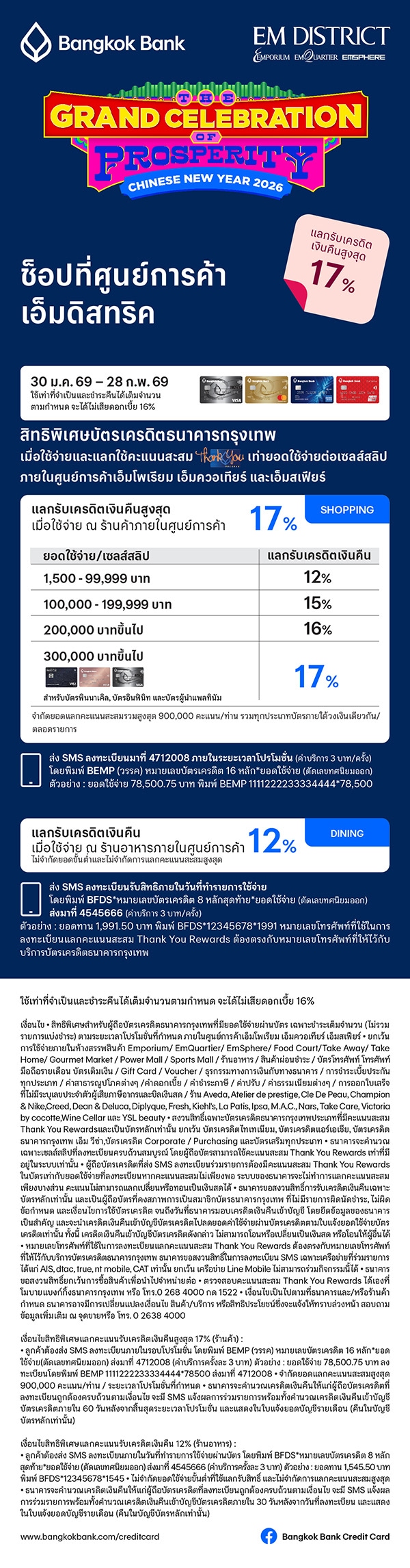 สิทธิพิเศษบัตรเครดิตธนาคารกรุงเทพ ภายในศูนย์การค้าเอ็มโพเรียม เอ็มควอเทียร์ เอ็มสเฟียร์
