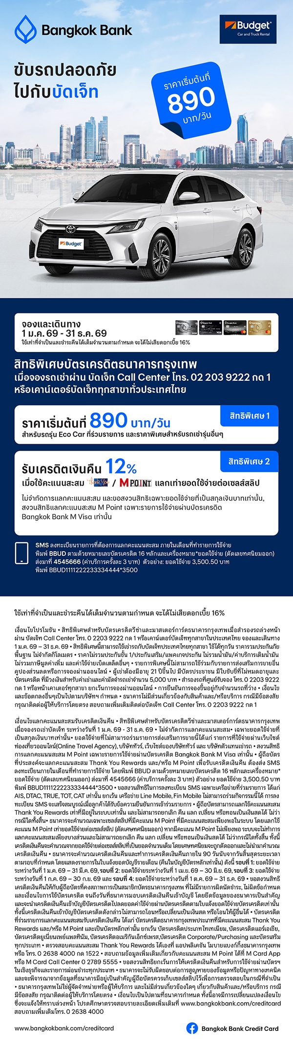 สิทธิพิเศษ 1: ราคาเริ่มต้นที่ 890 บาท/วัน สำหรับรถรุ่น Eco Car ที่ร่วมรายการและราคาพิเศษสำหรับรถเช่ารุ่นอื่นๆ