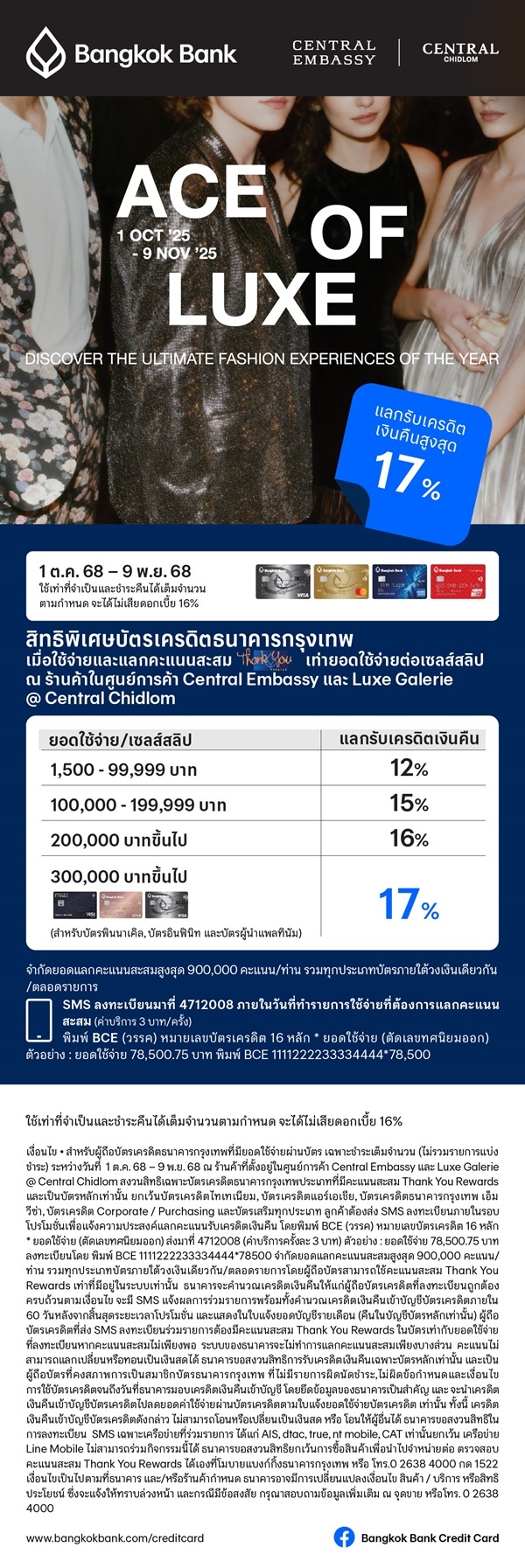 สิทธิพิเศษบัตรเครดิตธนาคารกรุงเทพ ณ ร้านค้า ในศูนย์การค้า Central Embassy และ Luxe Galerie @ Central Chidlom