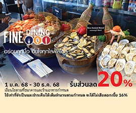 Hotel Dining สิทธิพิเศษบัตรเครดิตธนาคารกรุงเทพ อิ่มอร่อยสุดหรู พร้อมรับส่วนลดจากห้องอาหารที่ร่วมรายการตลอดทั้งปี ระหว่างวันที่ 1 ม.ค. 68 - 31 ธ.ค. 68 สอบถามและตรวจสอบข้อมูลเพิ่มเติมจากสื่อประชาสัมพันธ์ ณ จุดขาย หรือ โทร. 02 638 4000