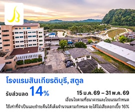 สำหรับการจอง และเข้าพัก ระหว่าง 15 มกราคม 2569 - 31 พฤษภาคม 2569