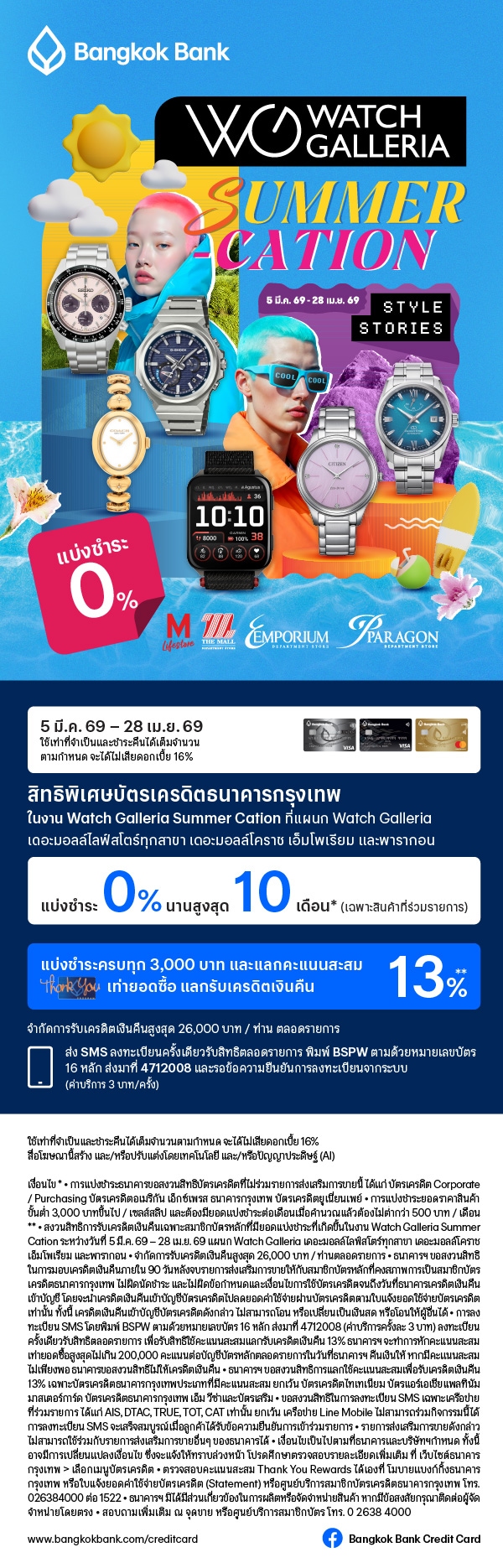 แบ่งชำระที่งาน Watch Galleria Summer Cation รับข้อเสนอพิเศษกับโปรแกรมแบ่งชำระ 0% นานสูงสุด 10 เดือน พร้อมแลกรับเงินคืน 13%