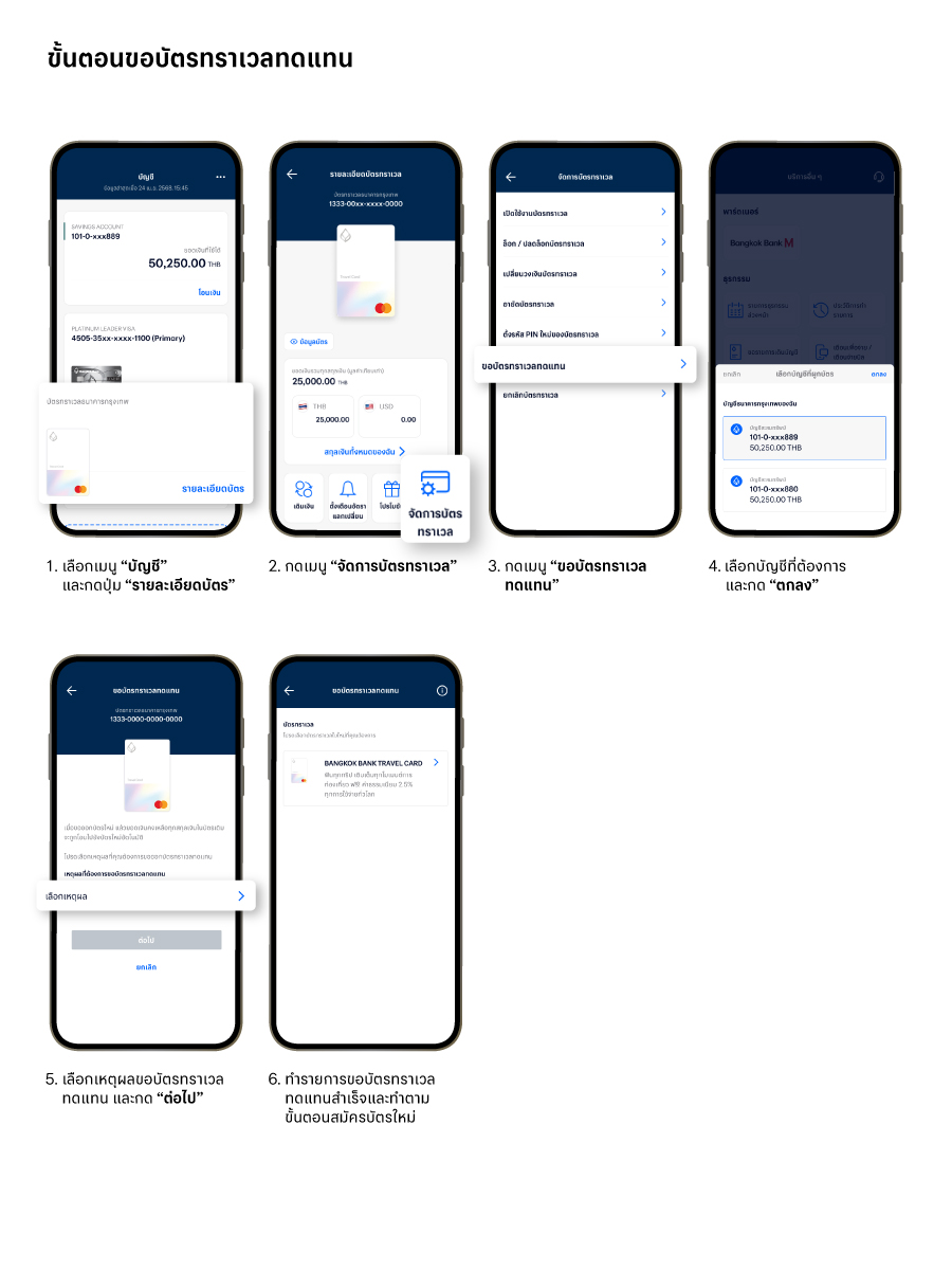 เมื่อสมัครบัตรทราเวลธนาคารกรุงเทพ ที่สาขาธนาคารกรุงเทพ ตามที่กำหนด หรือโมบายแบงก์กิ้งธนาคารกรุงเทพ