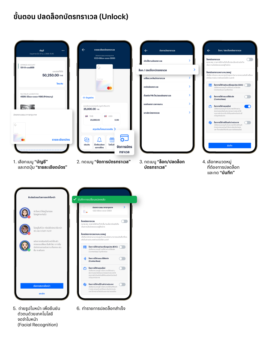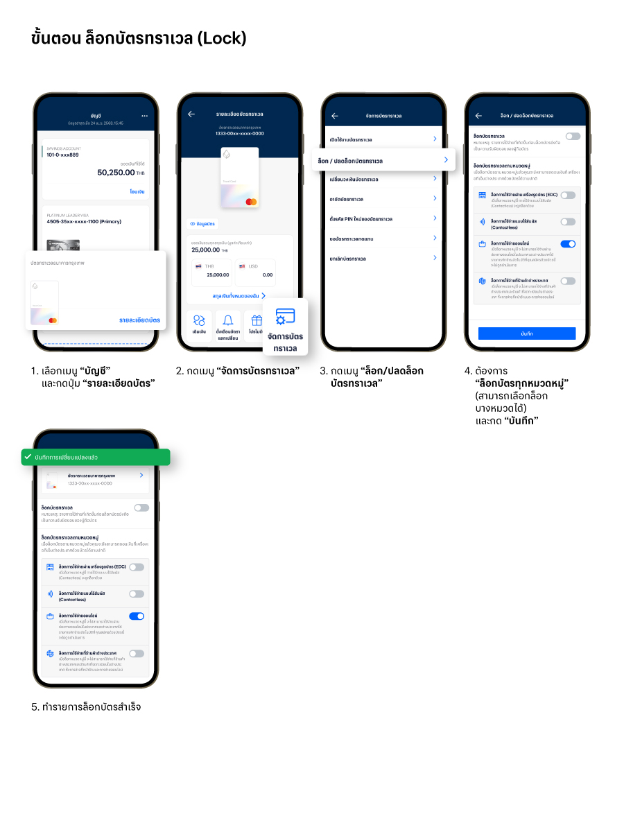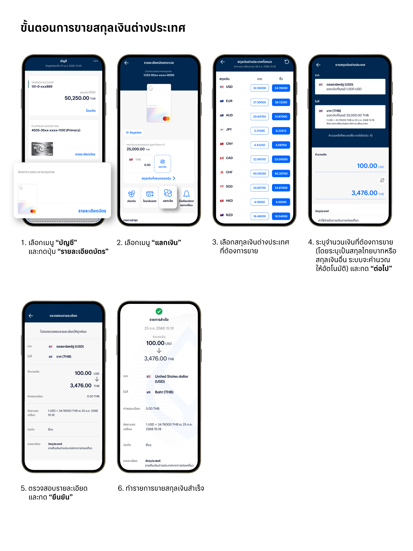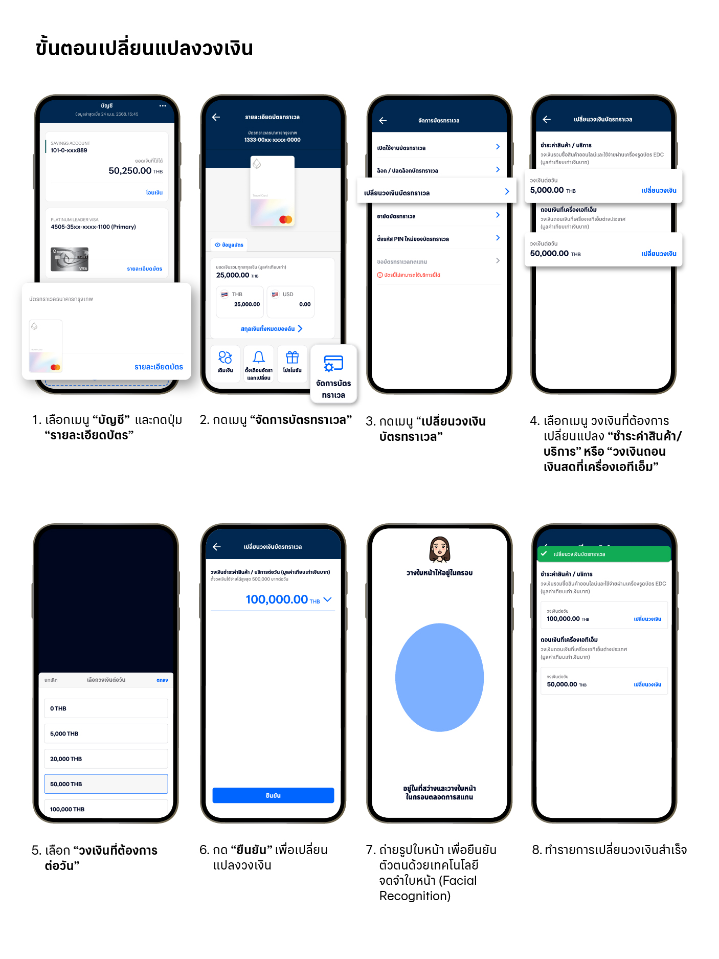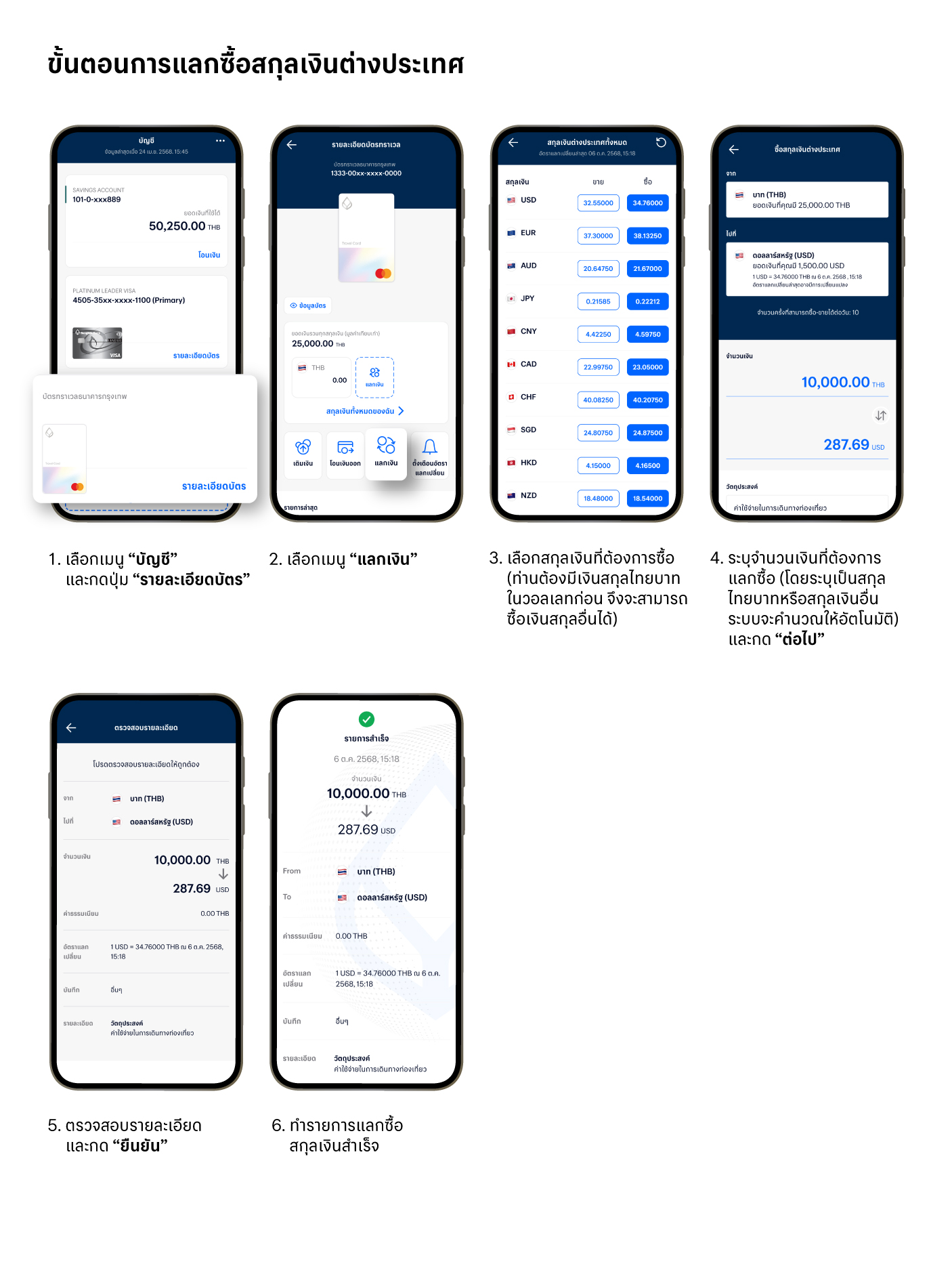 กำหนดวงเงินในการถอนเงินสดที่เครื่อง ATM ในต่างประเทศ (เทียบเท่าไม่เกิน 100,000 บาท / วัน) |