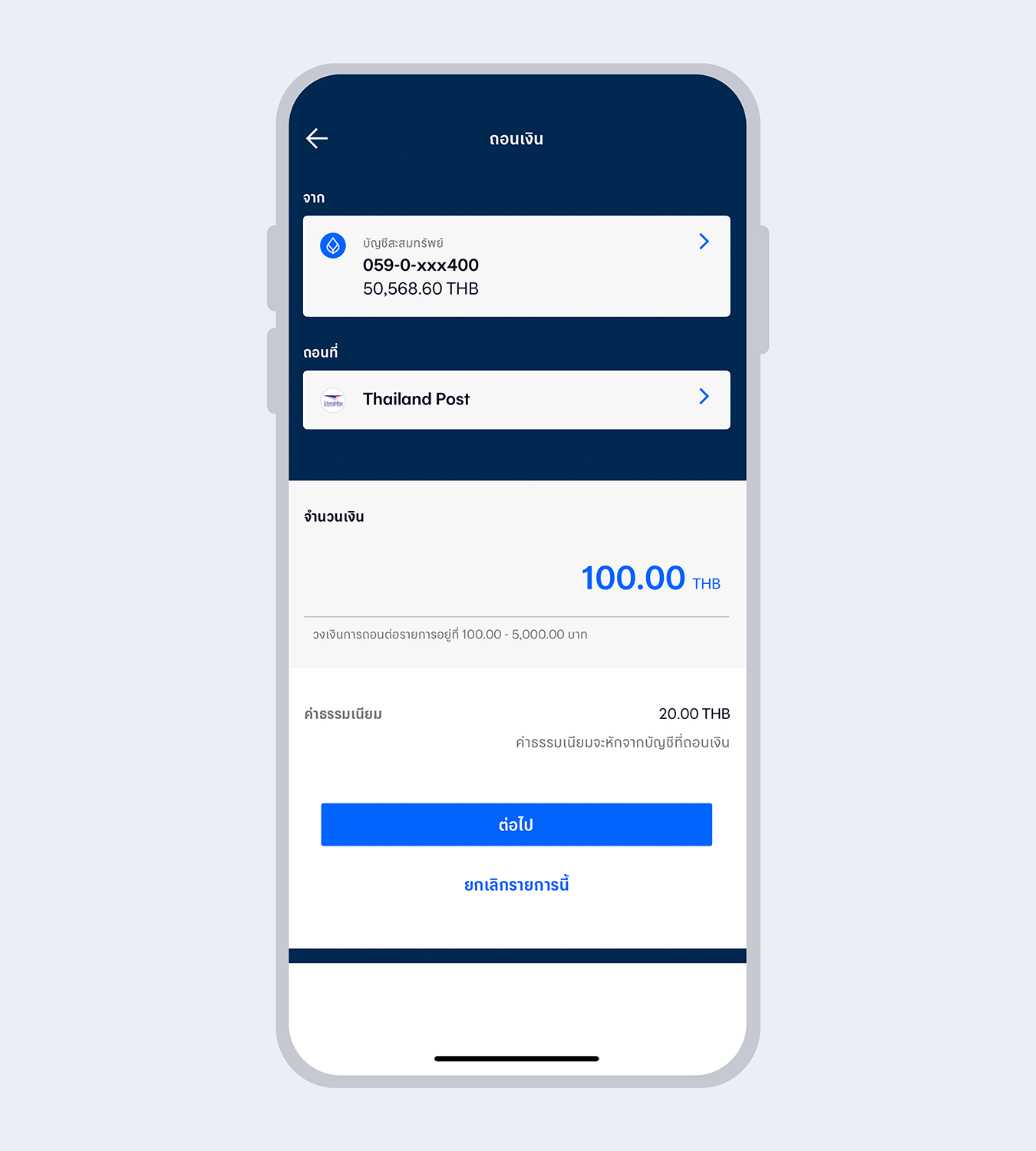เจ้าหน้าที่จะตรวจสอบรายการถอนเงิน และยืนยันรายละเอียดกับคุณอีกครั้ง จากนั้นกด “ยืนยัน” ผ่านโมบายแบงก์กิ้ง เพื่อถอนเงิน
