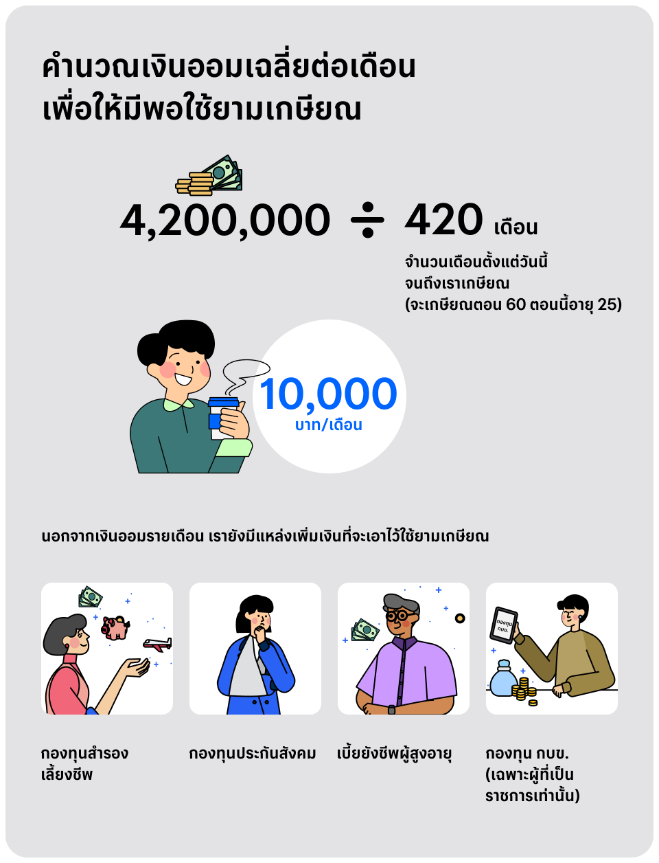 2. คำนวณเงินออมเฉลี่ยต่อเดือน เพื่อให้มีพอใช้ยามเกษียณ