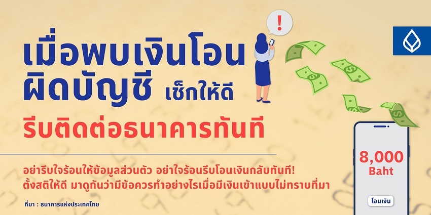 เตือนภัยลวงจากมิจฉาชีพใช้เราเป็นเครื่องมือโอนเงินไปซื้อของผิดกฎหมาย โดยแกล้งโอนเงินมาให้ ขอให้ช่วยโอนเงินกลับ อย่าใจร้อนรีบโอนเงินกลับทันที! ตั้งสติให้ดี มาดูกันว่ามีข้อควรทำอย่างไรเมื่อมีเงินเข้าแบบไม่ทราบที่มา