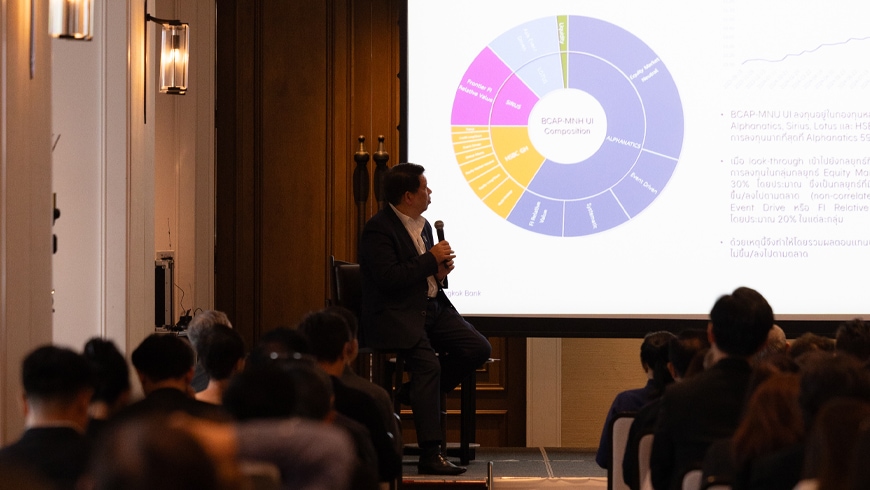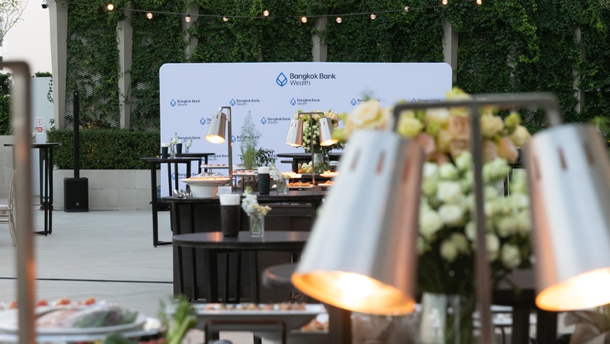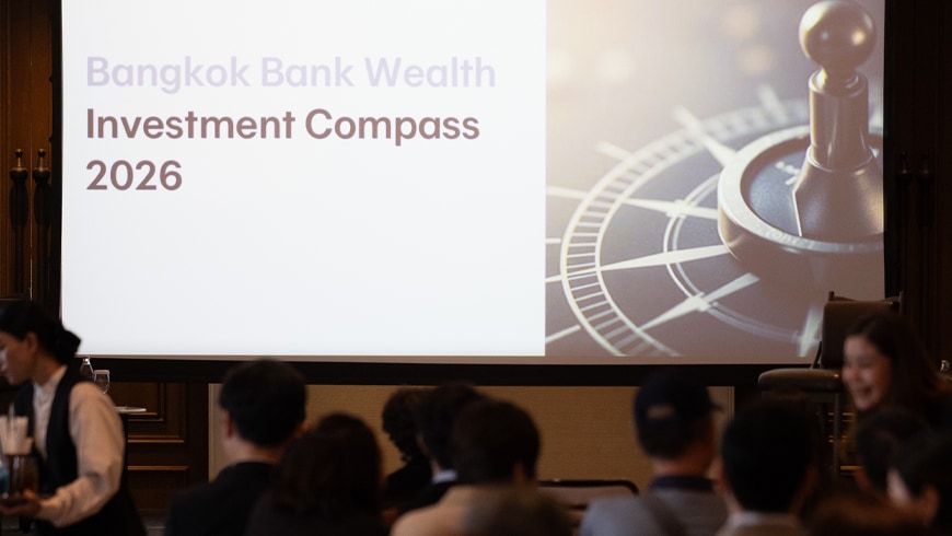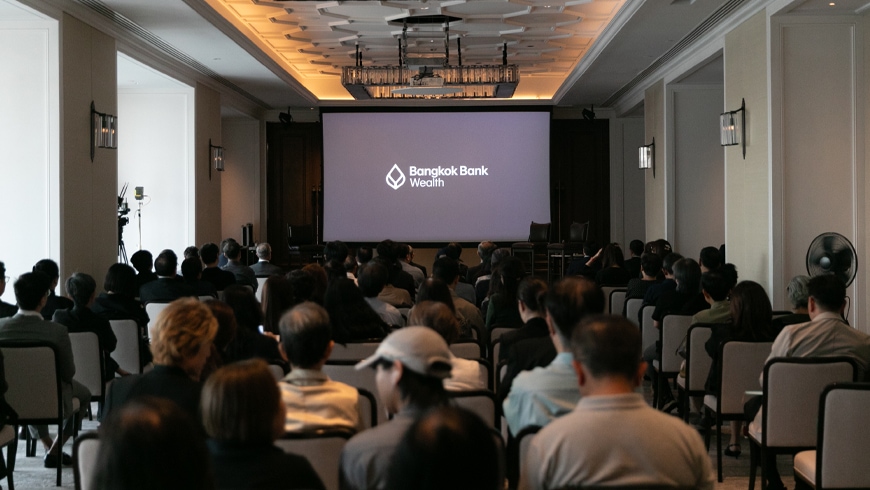 ธนาคารกรุงเทพจัดกิจกรรมสัมมนาการเงินและการลงทุนเพื่อนำเสนอบทสรุปภาพรวมเศรษฐกิจในประเทศไทยและต่างประเทศของปี 2568 และเสาะหาโอกาสแนวโน้มการลงทุนเด่นในปี 2569 นี้ ให้กับลูกค้า Bangkok Bank Wealth เพื่อเป็นส่วนหนึ่งในการวางแผนกลยุทธ์และทิศทางการลงทุนให้กับลูกค้าโดยเฉพาะ โดยภายในงานนี้มีหัวข้อมุ่งเน้นการวิเคราะห์สภาวะตลาดโลก ที่เป็นตัวการสำคัญในการกำหนดทิศทางกระแสการลงทุนในปี 2569 ได้แก่ Policy Tailwind, AI and productivity และ Multi Polar World & Diversification บรรยายโดย นายปริวรรตน์ ธีระดุสิตศิลป์ ผู้บริหารระดับ Vice President บริหารกลุ่มลุกค้า Wealth & Private Bank ร่วมกับ ดร. ธนาวุฒิ พรโรจนางกูร Co –Chief Investment Officer ทั้งนี้ยังรวมถึงการแนะนำพอร์ตการลงทุนที่น่าสนใจและเหมาะสมสำหรับลูกค้าทุกท่าน ในช่วงท้ายของสัมมนายังให้ลูกค้าได้ร่วมแลกเปลี่ยนมุมมองการลงทุนกับผู้บริหารและลูกค้าหลากหลายประเภทธุรกิจอย่างใกล้ชิดพร้อมดื่มด่ำบรรยายกาศในการรับประทานอาหารรูปแบบ Cocktail