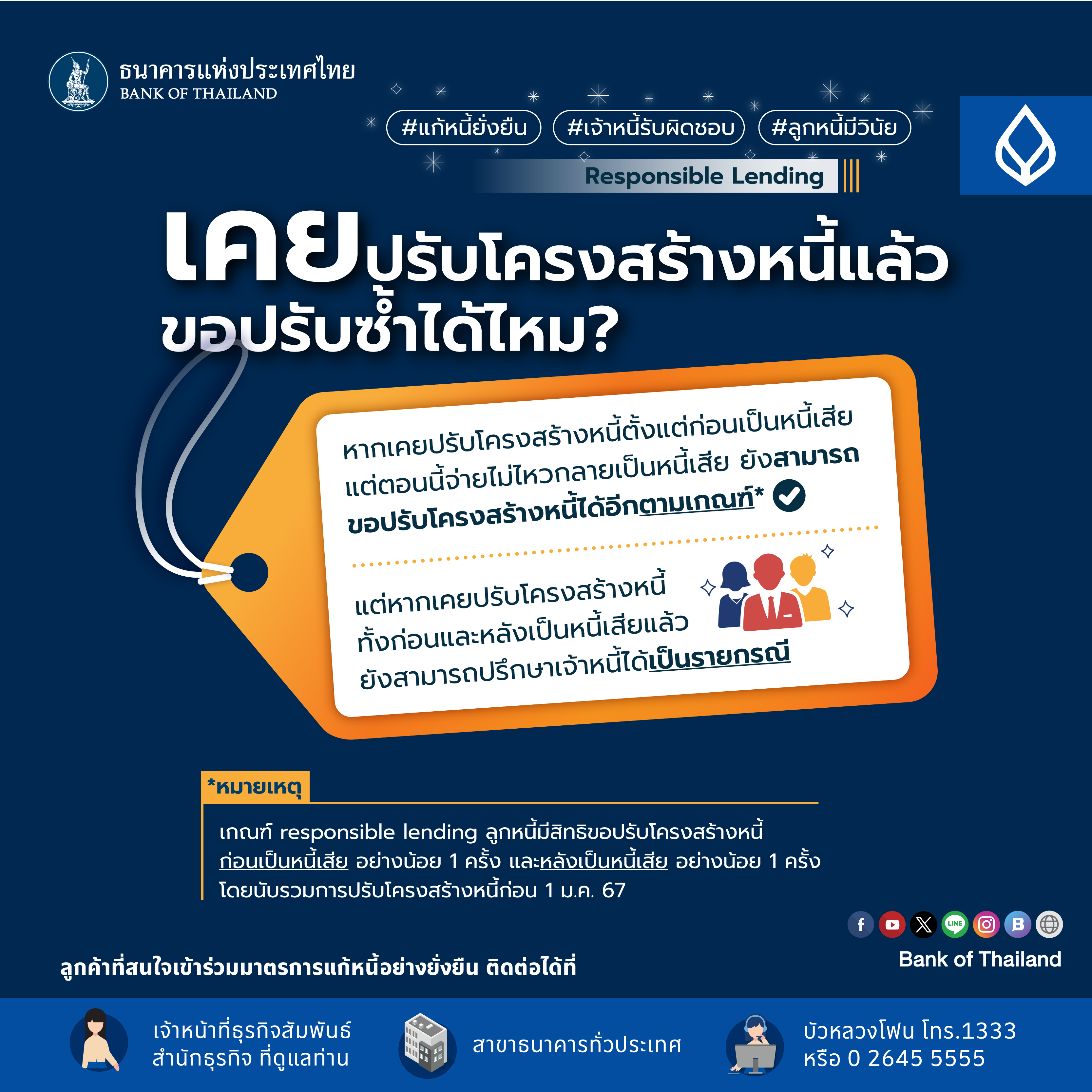 ดังนั้น ถ้ามีปัญหาการจ่าย ขอปรับโครงสร้างหนี้ อย่าปล่อยให้เป็นหนี้เสีย